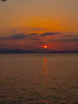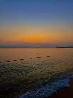 In the evening, the afterglow of the sunset adds a touch of gentle color to the beach.