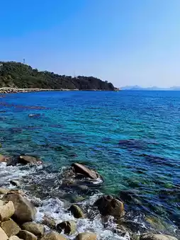 Walking along the plank road, on one side is the surging sea, with waves hitting the rocks, making bursts of noise; on the other side are lush green mountains, full of greenery.