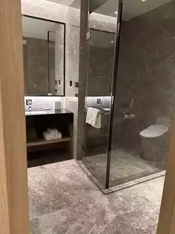 The extra large double bed is comfortable, the TV is also large, there are many channels 📺 There are also large comfortable L-shaped sofas, you can enjoy there ~ It is worth mentioning that the ceiling is high, no sense of oppression, full of space 👍🏻 In the evening can go to the large supermarket in the opposite IBC mall, purchase seafood delicacies back to the hotel room slowly sip, very comfortable ~ comfortable to spend a weekend 😍