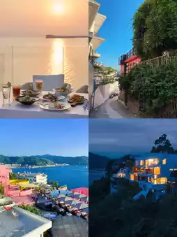 Waking up to the sound of waves and sunlight, living in a blue and white fairy tale world.