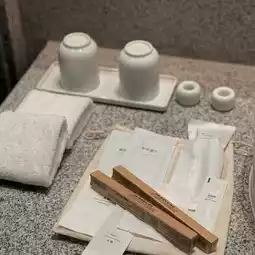 As soon as you step into the lobby, you're greeted by MUJI's signature minimalist style. There are no excessive decorations, just a blend of wooden elements and natural tones that create a tranquil and rustic atmosphere. The rooms are simple yet comfortable, with soft bedding that makes you never want to get up. The bathroom continues the minimalist design with white tiles and wooden shelves, clean and tidy, and the packaging of the toiletries is also simple, making you feel safe and comfortable using them.