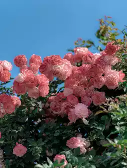 Stroll through the rose bushes, and let the gentle breeze caress your face. The clusters of roses sway gently, as if whispering sweet nothings. Pink, red, and white roses bloom freely, weaving a colorful tapestry. The petals overlap like delicate silk, shimmering in the sunlight.