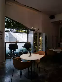 It is mainly gray and white, with large glass windows for lighting, and the windows are filled with wines with prices written on them.