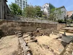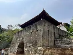 The South Gate (Old Gate) of Nantou was built during the early Ming dynasty and it did undergo restoration during the Ming and Qing dynasties. Lying at its foundation are granite slabs. There are brick layers covering the granite base. A brick structure on the second story served as the watchtower. Lying next to the wall is a ruins.
