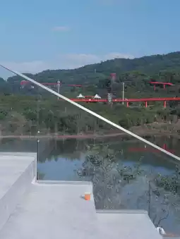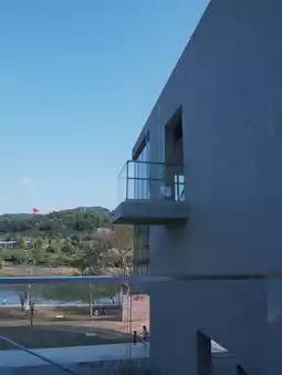 𖤐ˊ˗It is located by the lake, a three-story gray building. The first and second floors are different coffee shops. The downstairs is more cost-effective than the upstairs. The third floor is a rooftop and a rocking board. Next to it is another art installation building. The large floor-to-ceiling glass windows reflect the lake view like a painting, which is very beautiful!