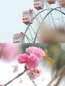 2. Ferris wheel: Create a fairytale atmosphere with the cherry blossoms in the foreground and the Ferris wheel in the background.