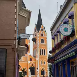 Next, head to Melania Town. The town is filled with European-style architecture, making you feel like you've traveled abroad in an instant. The streets are filled with a romantic atmosphere. Just find a corner, stand with the colorful houses as your background, and snap a picture to get stunning live photos.