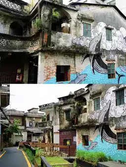 1. Longjin River: It is said to be the "mother river" of the ancient ruins. Along both sides of the river are old houses, abandoned gardens, graffiti art, old banyan trees, and old stone bridges.