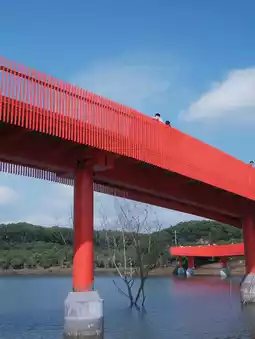 The most famous landmark of Hongqiao Park is of course the 4-kilometer-long "Hongqiao". The bridge is 4 kilometers long, 5 meters wide, and has an average height of 8 meters. It is the second largest steel structure landscape bridge in mainland China. The entire bridge is surrounded by white clouds and green mountains. From a bird's eye view, it looks like a flowing red ribbon, winding through the undulating mountains and the vast lake! At the end of Hongqiao is the red sightseeing tower, from which you can overlook the beautiful scenery of Hongqiao and enjoy the city view of Shenzhen's Guangming District.