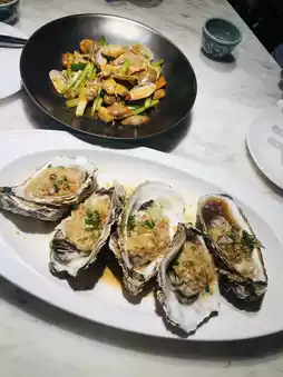I really like to drink tea in this shop🫖But this time I ordered small dishes for dinner instead of dim sum🥧I ordered several small dishes, including a soup dish and a fish belly tofu pot. Of course, I ordered oysters🦪 and abalone, etc. The oysters🦪 were very big and meaty, and the abalone was very chewy. I also got a bowl of mango🥭sago for free when I checked in. The seats were spacious and comfortable
