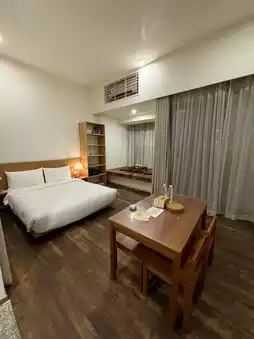 The dining table is big, perfect for a group of friends to order takeaway and eat at the hotel!