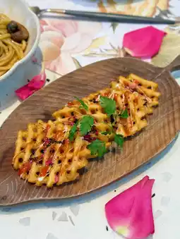 It is fried until golden and crispy, and sprinkled with black truffles, which makes it even more delicious.