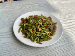 The chicken offal and pepper shreds are cut very finely, the sour beans have a crisp texture, the chicken offal is crispy and tender, and the whole dish tastes sour and spicy, very delicious, giving the whole dish a layered taste.
