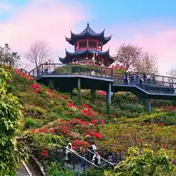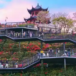 By the Yan Guixi stream on the north side of the park is a traditional Chinese garden courtyard, with pavilions, red pillars, rockeries🪨, and a garden rockery, filled with the charm of Jiangnan, perfect for traditional Hanfu and cheongsam photoshoots;