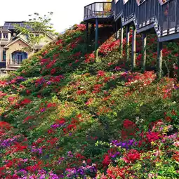 📸 Besides the bougainvillea wall, the yellow and purple trumpet trees here are also in full bloom.