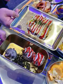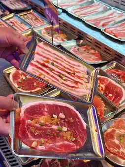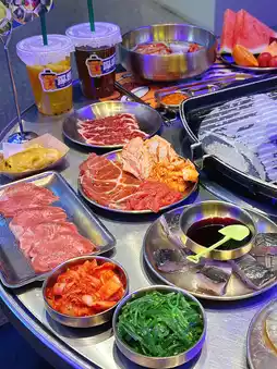 This time I went to eat Korean BBQ buffet. The restaurant is right next to Exit F of the East Gate. The location is very convenient. Even people with poor directions don't have to worry about getting lost. The lowest price for all-you-can-eat is ¥98. For an additional ¥60, you can eat all-you-can-eat durian and eel. There are more than 200 kinds of dishes available in unlimited quantities. The restaurant is decorated in a Korean street style, and the atmosphere is full.