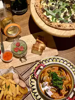 In addition to the steak, its pizza is very high quality, handmade and using an Italian oven, so the cake base is very tasty, and we chose a strong black truffle pizza, really strong 😍