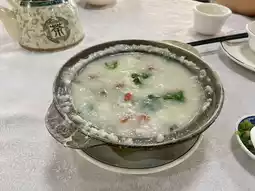 This is a porridge dim sum that I personally like very much. The portion of pork dye is generous, the white porridge is cooked soft and tasty, and the addition of chopped green onions makes the taste very memorable.
