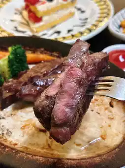 M3 Wagyu is cooked on an iron plate, charred on the outside and tender on the inside. It is aged for 28 days, and the meat is particularly tender and has a rich beef flavor.