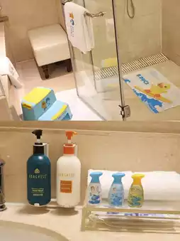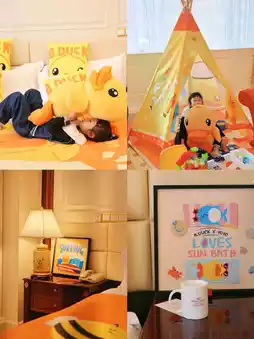 If you bring your children, you can stay in the parent-child suite, which is an open-plan suite. The parent-child room is built with a little yellow duck theme. It is cute and adorable, and comes with pillows, bed covers, tents, little yellow duck airplane models, large little yellow duck dolls, etc. The room facilities are also complete, with a bathtub and children's footstools in the bathroom. It is really thoughtful.