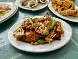 The meat is plump and tender, crispy on the outside and soft on the inside, with a spicy salt and pepper flavor. The portion is large and it goes great with wine.