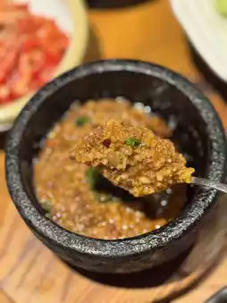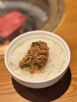 The free unlimited minced beef is rich in flavor and fat, perfect for mixing with rice or wrapping in lettuce!