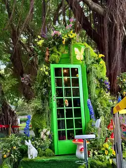Getting there is super easy too. Just take Metro Line 12 to Zhongshan Park Station and exit at C. You'll quickly find the exhibition. Once you arrive, you'll be amazed by the scenery. Various flowers and greenery surround the ancient banyan tree, creating a strong spring atmosphere. Everywhere you look is lush and green, and every step feels like an adventure in a fairytale secret realm.