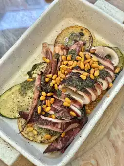 🍴The pan-fried octopus legs are fried just right, chewy but not too hard, and paired with the green melon, the taste is quite harmonious and rich