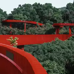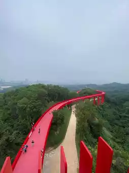 I have never seen such a crazy design! The whole 4 km long "red ribbon" 🎀 is suspended in the forest, in the morning it looks like a fire dragon crossing the mountains, at night it lights up and transforms into a sci-fi light belt 🌉, and it's free to play!