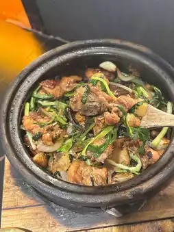 The whole pot of dry steamed vegetables is ready-made over open fire! Great value for money and delicious! 😋