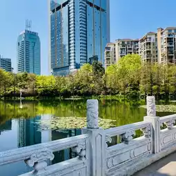 There are many bridges in the park. Some of them are simple and elegant, such as Lanyue Bridge, Jinyue Bridge and Feihong Bridge. They are built along the lake and span across Lihu Lake. Standing on the bridge, you can overlook the landmark skyscrapers such as the Kingkey 100 Building and the Diwang Building.