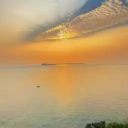 In the evening, I came to the cliff sea view restaurant. At this time, the sun was gradually setting, and the afterglow dyed the sea surface into golden orange. The waves were sparkling and beautiful. It seemed that time had stopped for this beautiful scenery.