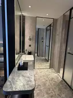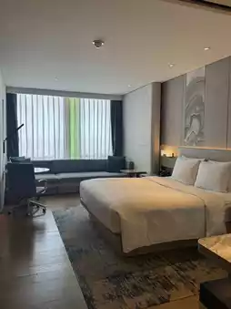 After much deliberation between different hotels, I chose this one thinking it might be closer to the airport. The location is far from tourist attractions, with the only advantage being its proximity to the airport. However, there is a large shopping mall nearby, so it wasn't boring. This is not a recommended place for sightseeing, but if you have a short layover in Shenzhen for about a day, I would recommend it. The room is clean and tidy, sufficient for a one-night stay. The hotel has a lounge, allowing for happy hour, and breakfast is also available. Shenzhen seems to be more expensive compared to other parts of China.