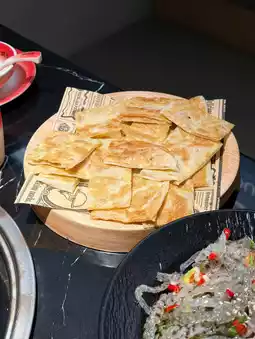 The package also has 🐟 fish bone platter Different fish parts are available; signature handmade crispy fish balls are large, hand-beaten fish balls are very bouncy; crispy fish skin is a large plate, with a little spicy and tasty, really fresh and crispy; handmade fried cornstarch into the pot gently rinse 1-2 seconds to eat, the taste is very smooth.