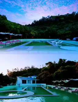 The outdoor swimming pool hidden in the forest is perfect for summer fun and cooling off. With prepared swim rings and small boats nearby, you can dive in and play freely. Walking further up the mountain, you can harvest lychees with your own hands—large, plump fruits perfect for eating or making wine, bringing joy to summer days.