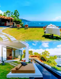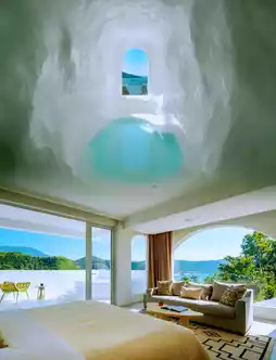 The guesthouse has 25 rooms of various types, distributed across 3 buildings, each with its own unique view. Every room is uniquely designed with low-saturation color schemes, featuring private pools and sea views. Exclusively enjoy the beautiful sunset scenery through a full-sized viewing frame that brings the azure blue directly to your eyes, creating the illusion of being on an island getaway.