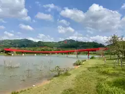 Like a bright red ribbon floating in the mountains, with birds singing and flowers blooming