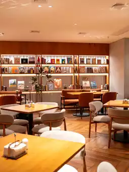 The decoration here gives people a very relaxing feeling, with dark green and wooden decorations, and garden installations everywhere. It's like being in an oasis in the city, so peaceful!