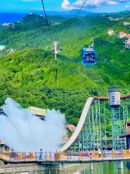 Must-try attractions: "Roaring Torrent" wooden roller coaster, log flume ride, Cloud Sea Cable Car (panoramic mountain and sea views).