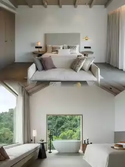 The interior of the room is dominated by earth tones, with rich cotton and linen fabrics and handmade wooden furniture to create a warm and comfortable living atmosphere. The oversized floor-to-ceiling windows bring natural light into the room, and some room types also have private plunge pools or terraces, allowing you to enjoy a romantic time alone with nature in a completely private environment.