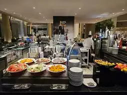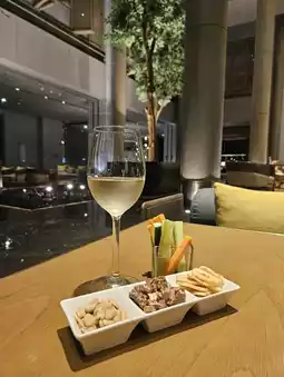 The hotel lobby has a unique design, with an extra-high ceiling and green plants, creating an atmosphere like an urban oasis, which feels quite high-end and beautiful. You can purchase afternoon tea packages in advance and enjoy them in the hotel lobby lounge, next to the buffet area. The price is quite affordable and the cost-effectiveness is extremely high. The afternoon tea is different from the usual three-tier design. This one is mainly savory, paired with wine and large portions of food. It is very suitable for men to enjoy and spend the entire afternoon happily.
