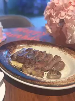 The main course is the dry-aged M5 marbled steak, which is served piping hot. The sizzling sound is very appetizing, but it also contains a lot of oil, so it is very greasy if you eat too much.