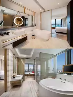 The room has excellent lighting, and the floor-to-ceiling windows allow you to enjoy the beautiful scenery of Shenzhen. I stayed in a view room, overlooking the sunrise and sunset of Shenzhen Bay, which was very beautiful. The oversized bathtub is simply a lifesaver after a tiring day. Take a bath and relax. The kids' room is also very thoughtful, with all kinds of toys, so kids can have fun in the room.