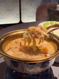 The oven meat uses moderately fat and lean pork, and is marinated, air-dried, roasted and other processes to make the pork skin crispy and the meat fragrant. The side dish is Northeast pickled cabbage, stewed with broth, served with fragrant chrysanthemum, the stove meat tastes soft, the soup taste fresh and mellow💫
