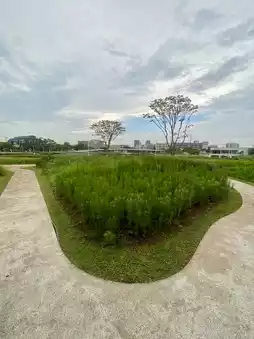 The park has a musical fountain, interactive water play devices, large lawns and trails, where people can dine, play, relax, chat and share happy times.