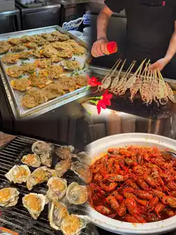 - A large plate of spicy crayfish 🦞, which you can peel and skewer, then drizzle with garlic sauce for extra flavor.