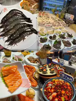 This restaurant has been a well-known establishment in Dongmen for 10 years. For just ¥178, you can enjoy two hours of unlimited fresh seafood. The live seafood tank offers abalone, sea snails, prawns, clams, razor clams, and crabs—all incredibly fresh and lively.