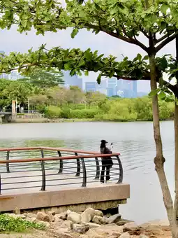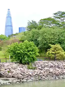 This park is large and quiet. There is a sea side, so you can walk and play with children on the beach, but this place is not for swimming. There are many green zones you can relax and sit down on the grass. You can rent a bicycle and ride among the seaside. This place is quite even weekend and holidays. You can see a modern part of Shenzhen with skyscrapers too from this park.