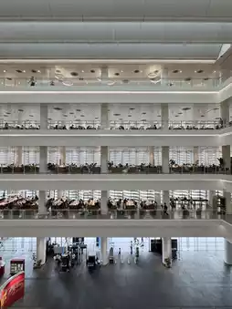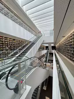 The entire library is very modern, with five floors, each floor has a large collection of books, almost wherever you see a wall, there is a bookshelf😮