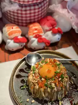 There is also this signature goose liver, must order must order, really tasty, underneath also a layer of mango, mouth and taste are very good, eat a few more pieces will not feel missing ☺️ There is also this salmon lava melted rice, see the appearance know very tasty, salmon moxibustion grilled, added melted eggs, after eating really very satisfied 🥰